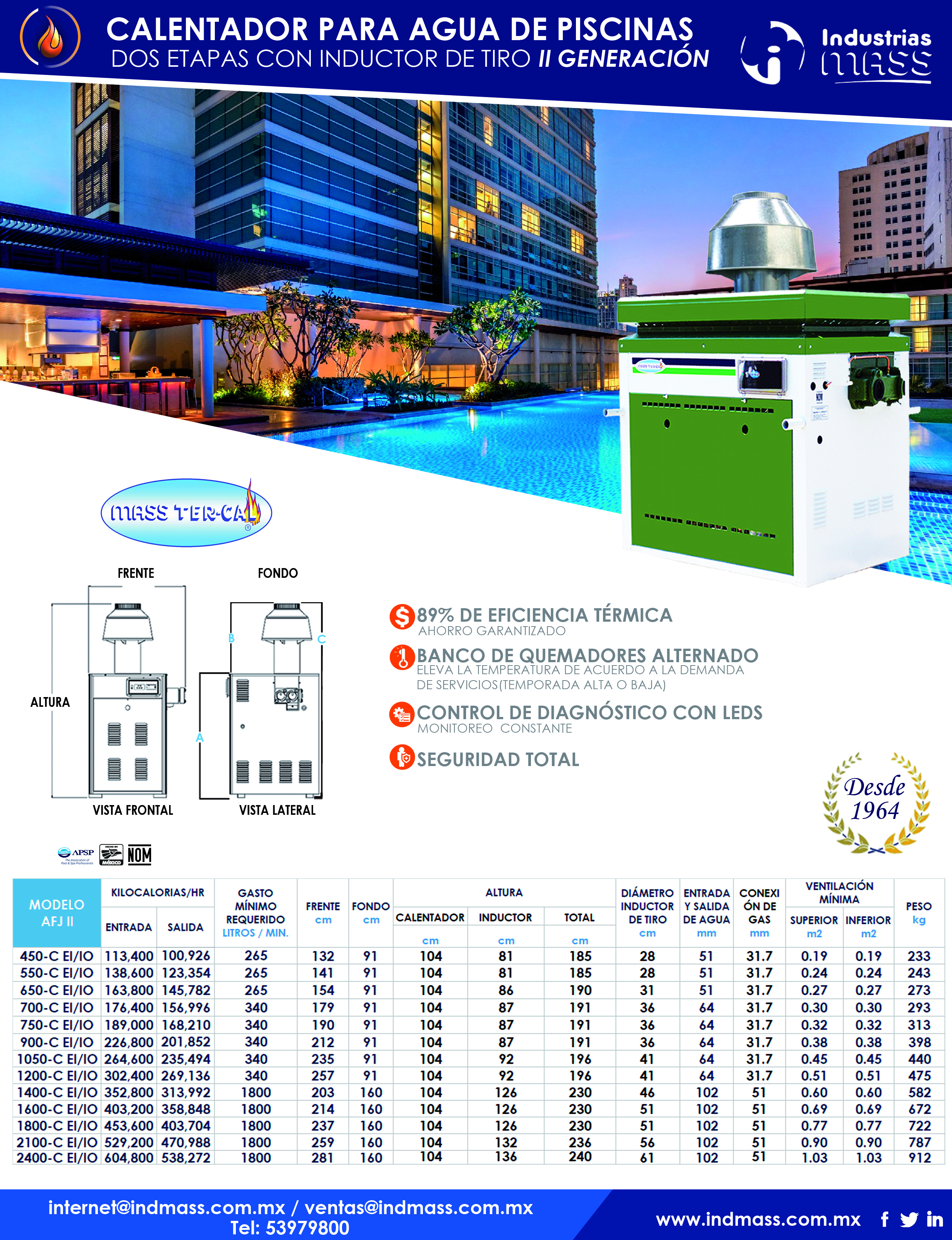 | ALTURA TOTAL DEL CALENTADOR CON INDUCTOR DE TIRO | 191 | cms. |